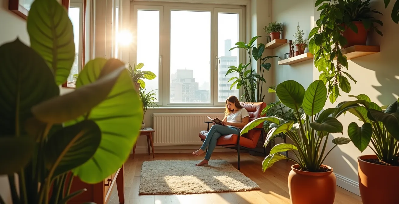 This is where the paradigm shifts from plant ownership to spatial choreography. It’s a method that involves sculpting with light, layering textures to invite touch, and arranging greenery not just for aesthetics, but to create targeted restorative micro-zones. This guide will walk you through the core principles of designing, not just decorating with, nature. We will explore how to turn any urban apartment, regardless of its limitations, into a vibrant sanctuary that actively supports your mental health.